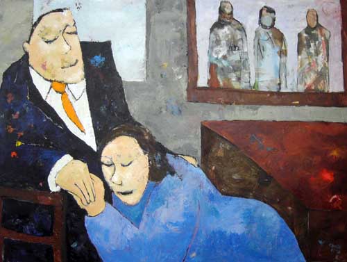 ![]() "Vernissage" 180 X 160 - 2008 | ![]() "Sofa" 162 X 130 - 2008 | ![]() "Adam, Eve et le serpent au paradis" 100 X 70 - 2008 |
